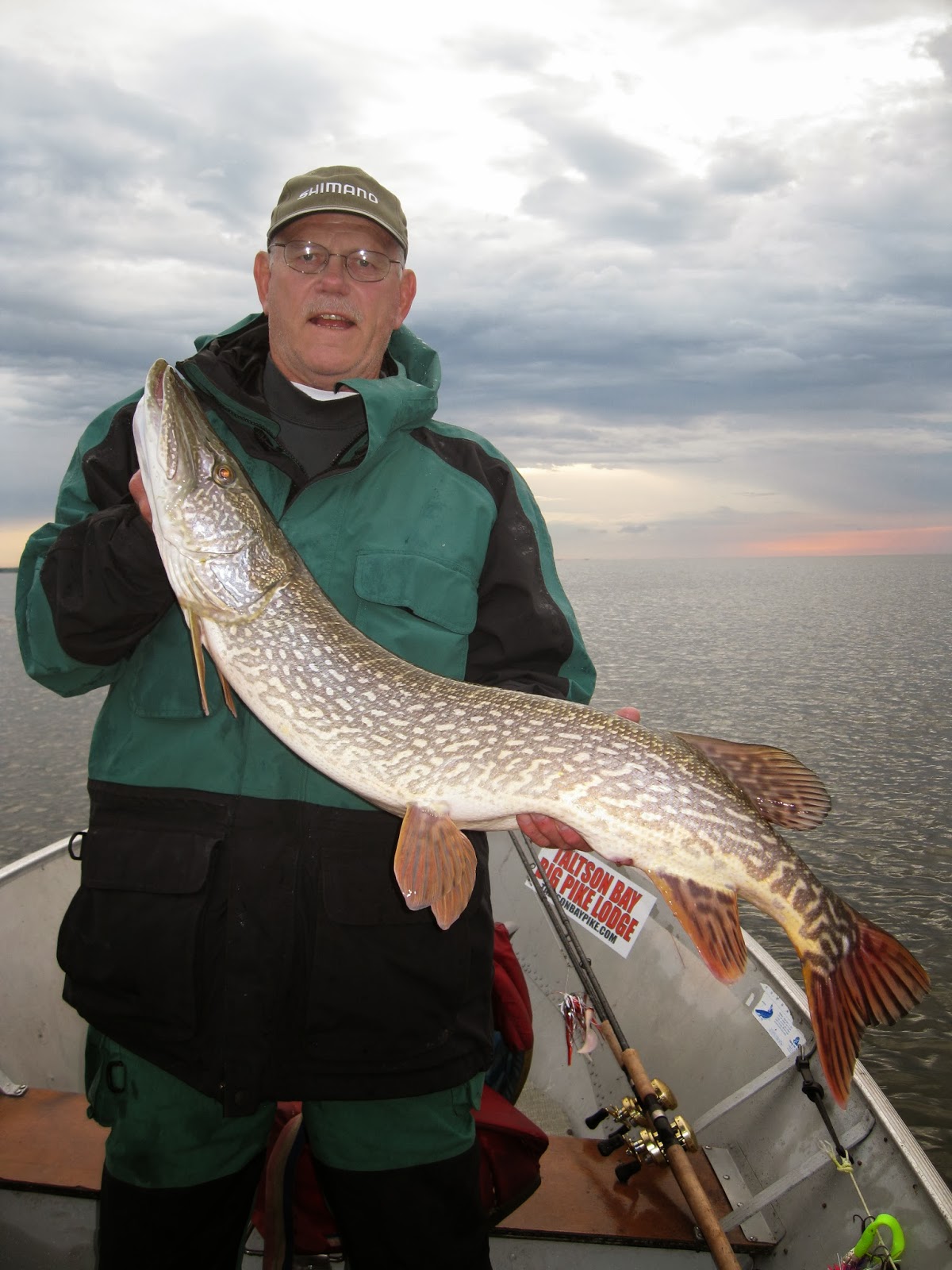 The pike never cooperated as they have in the past, but the boys from south of the border still put the hurt on close to 700 fish. The largest fish was a 47” brut caught by Richard Schmitz and the group as a whole averaged 1 pike 41”+, for every 9 pike they caught. It was nice to note that a clockwork walleye pattern has been established for july-september. If you want walleyes by the dozens, we now have that to offer in a very specific area as well.